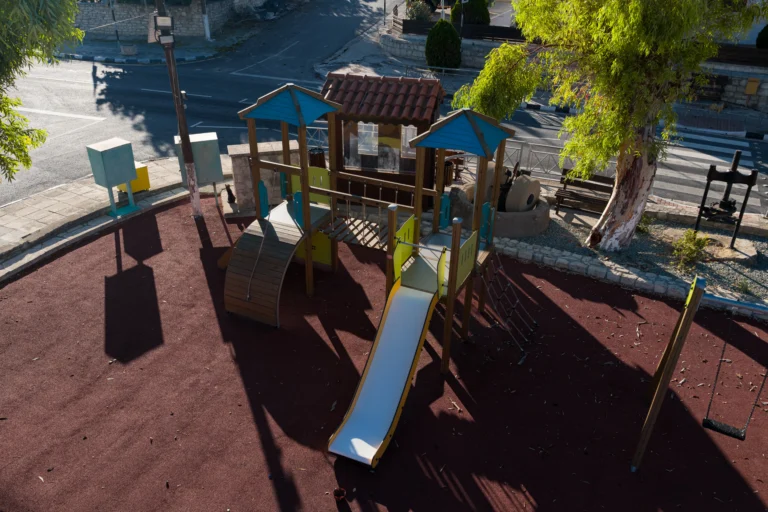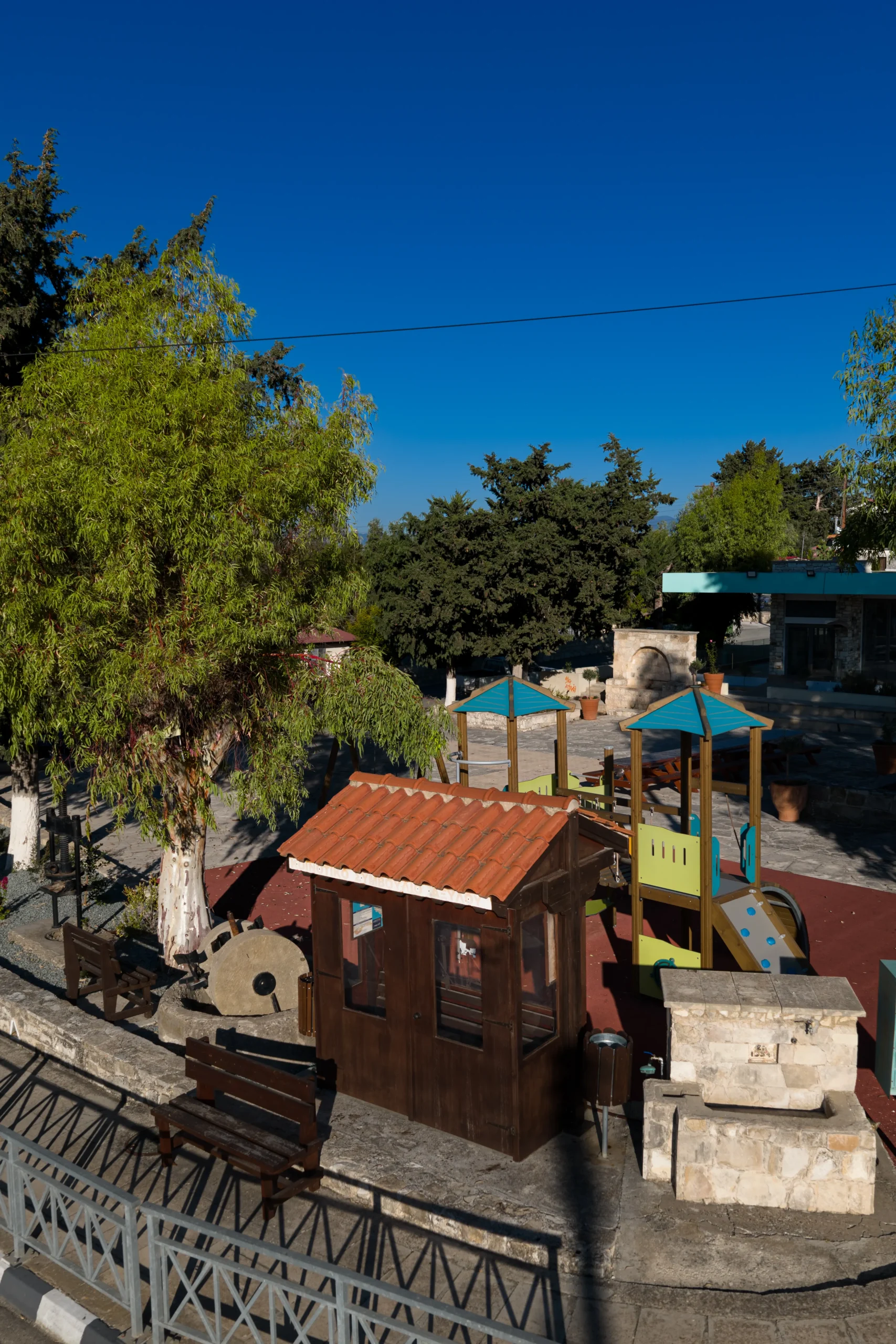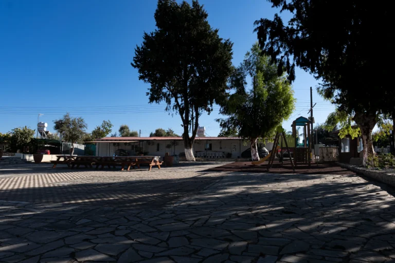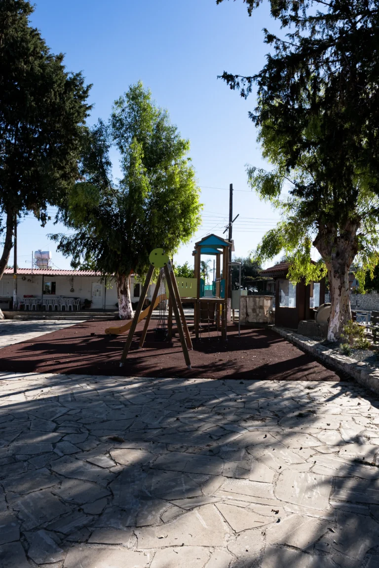 Axylou’s main square is the heart of the village. It was laid out after the 1953 earthquake when the new houses and center were built. The square includes the Community Hall, which houses the Community Council and doubles as the local events hall for weddings and cultural events. There is also a small village park and children’s playground, shaded by cypress trees, along with a café where locals gather.